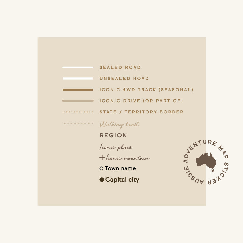 Put this sticker on your van fridge or door, your table, or on the side of your black trailer or 4WD. Mark the routes you’ve traveled with Sharpie as you go. Or enjoy it as functional geographic ‘decor’ during your travels.